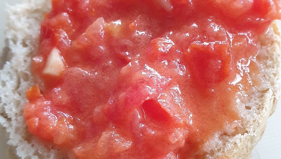 Om man nu gjort sig ett gott bröd så kan man ju även ge sig på att göra som spanjorerna gör som Standardfrukost 1A - tomatröra.